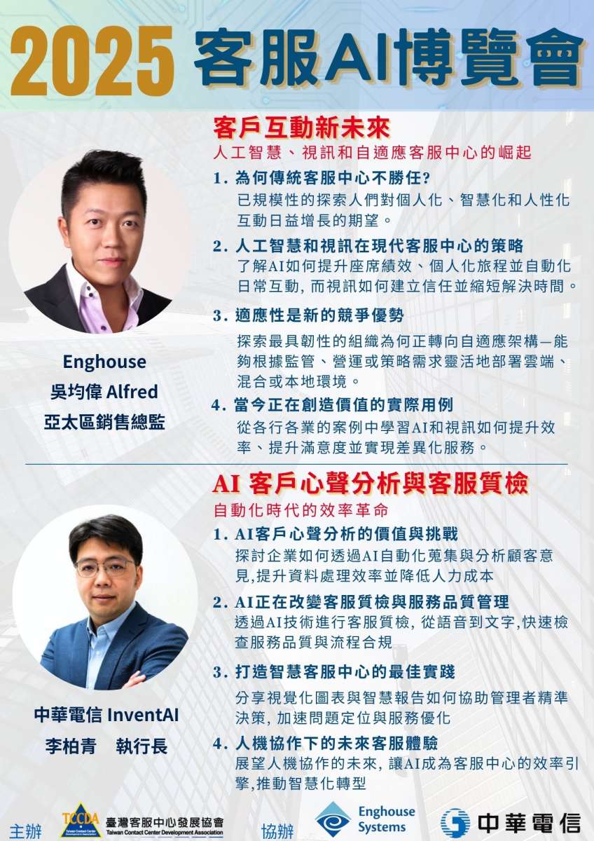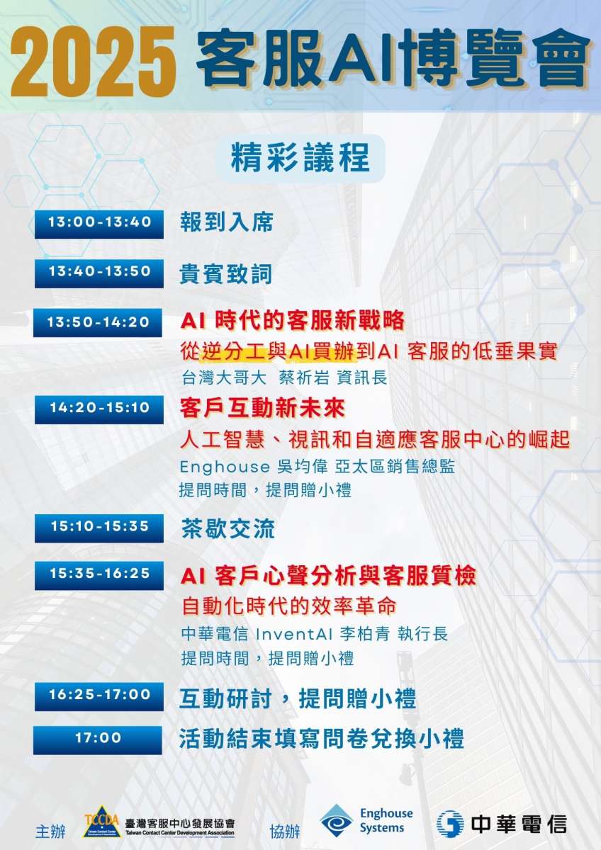 15:35 | - | 16:15 | AI 客戶心聲分析與客服質檢 自動化時代的效率革命 |