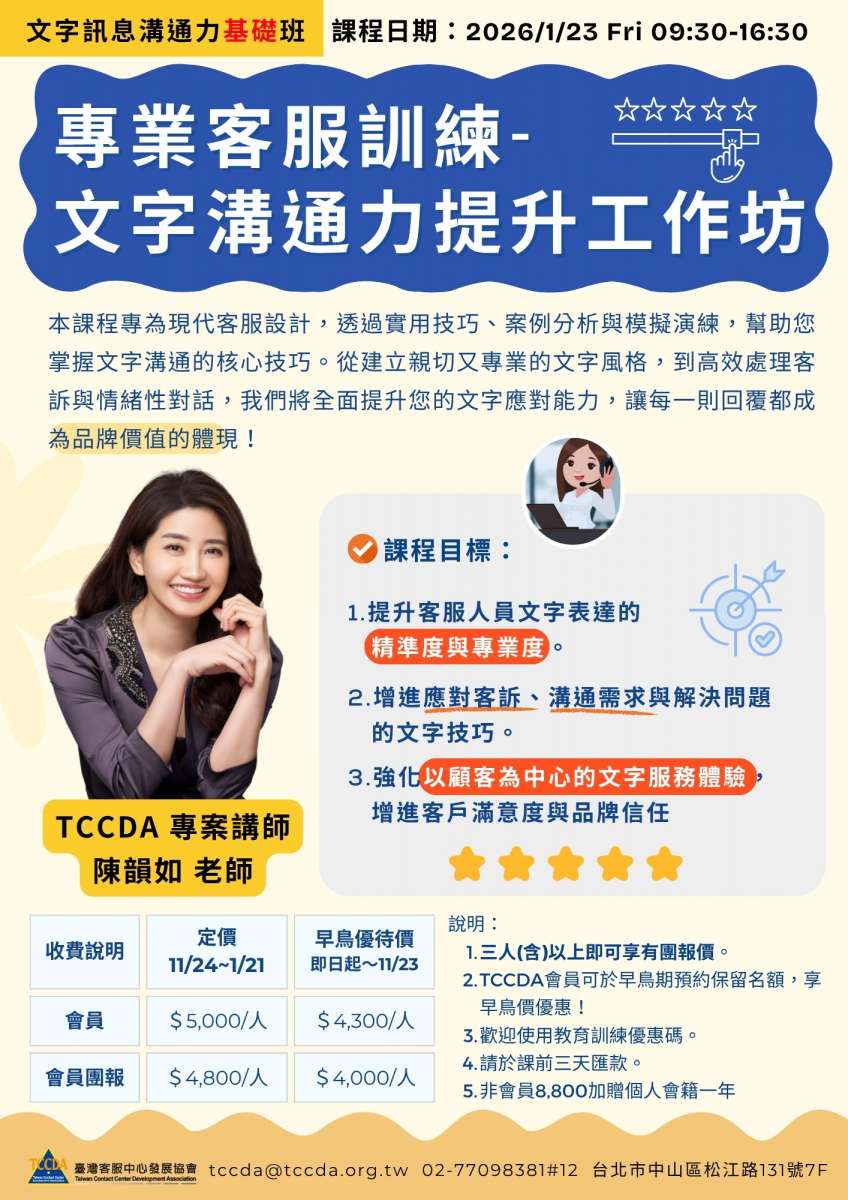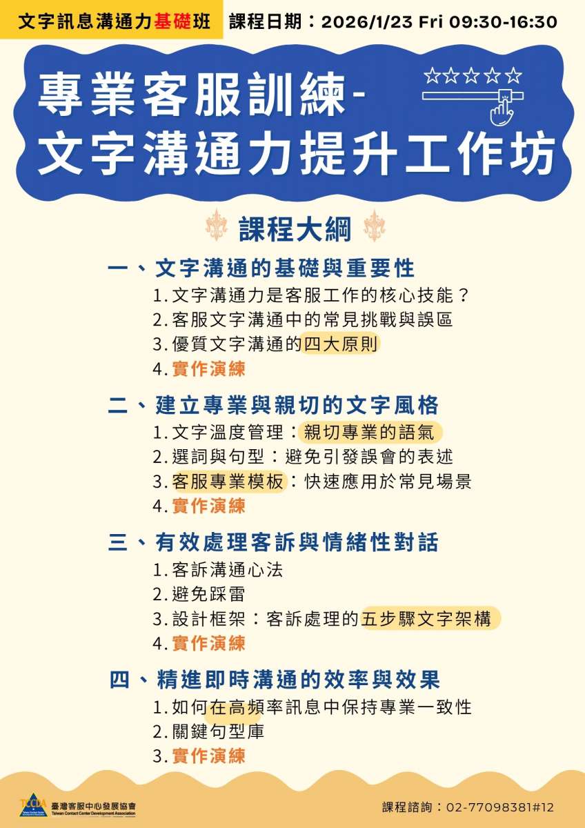【培訓課】2026/01/23 專業客服訓練-文字溝通力提升工作坊