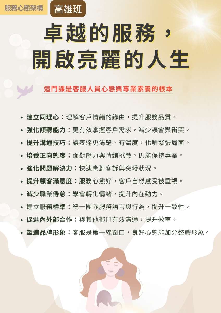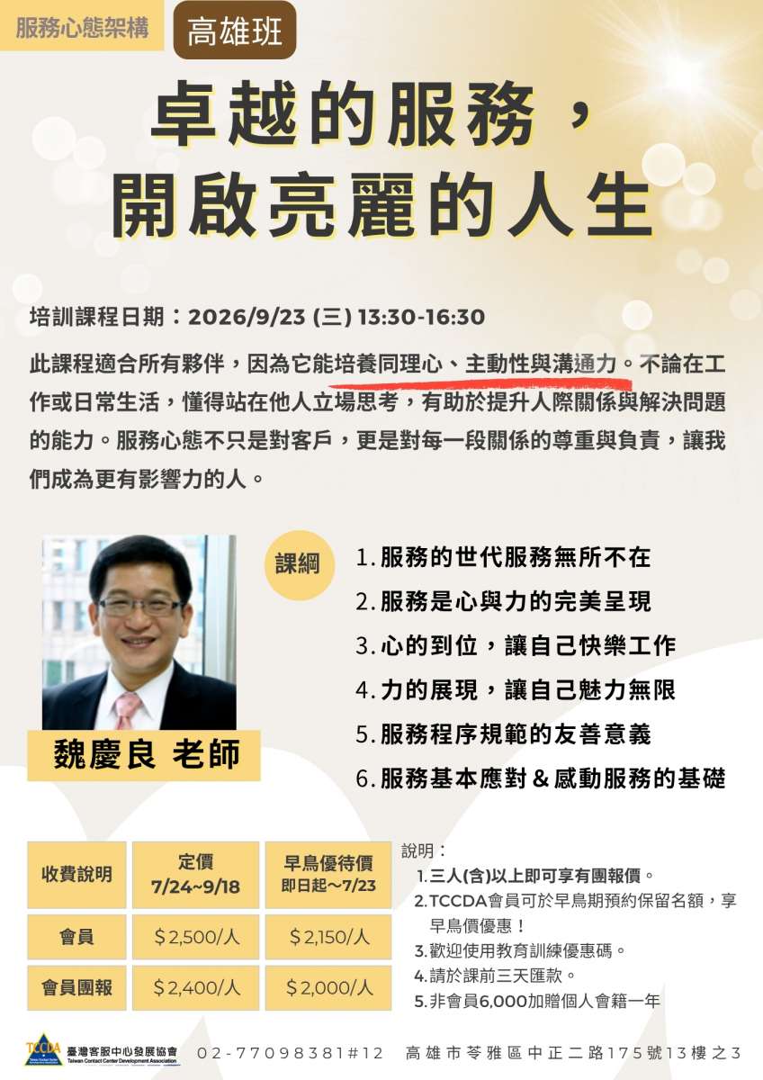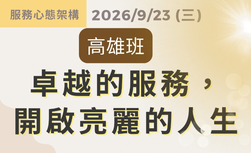 【培訓課】2026/09/23 【高雄班】卓越的服務, 開啟亮麗的人生