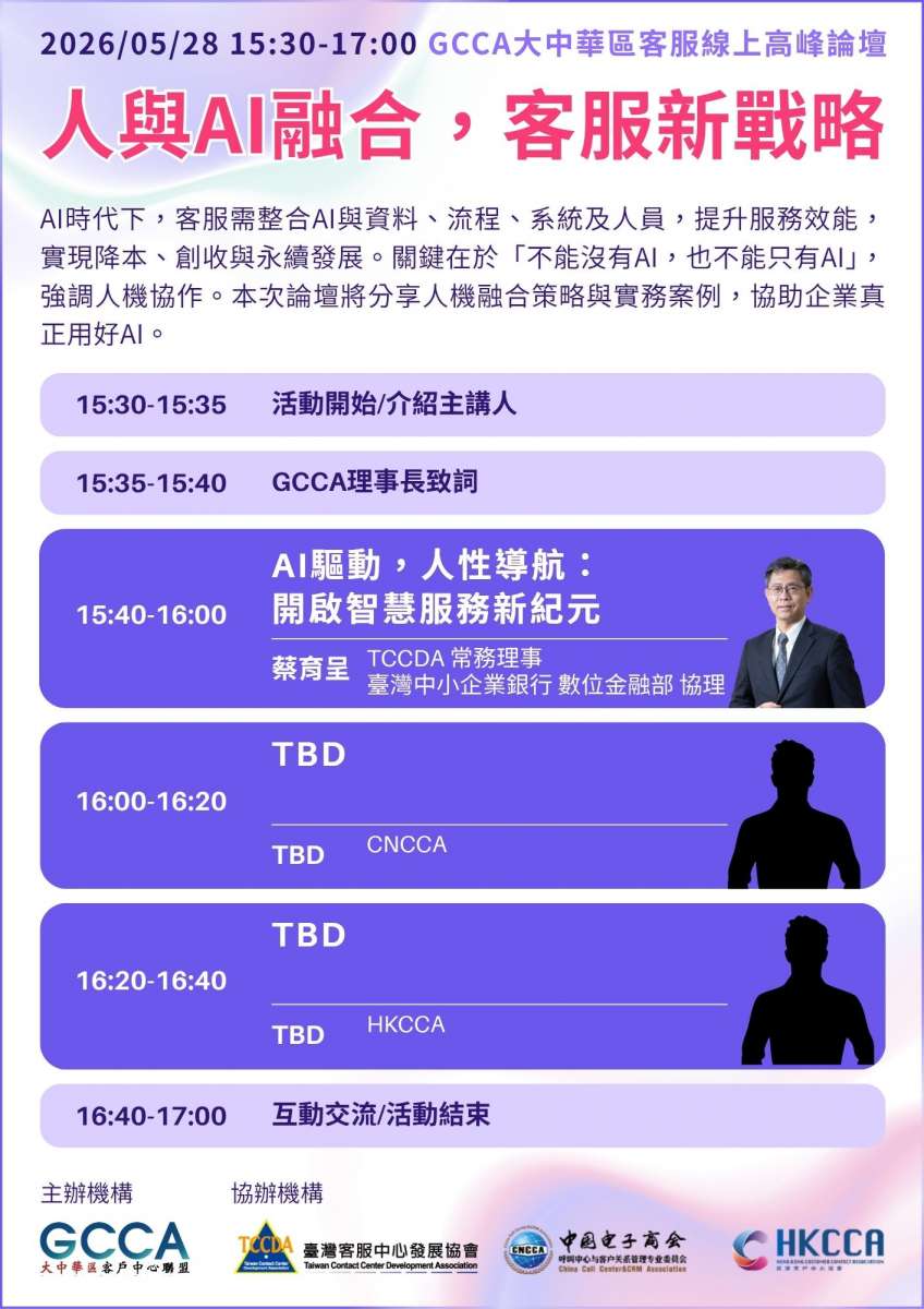 【GCCA】2026/05/28 線上高峰論壇「人與AI融合,客服新戰略」