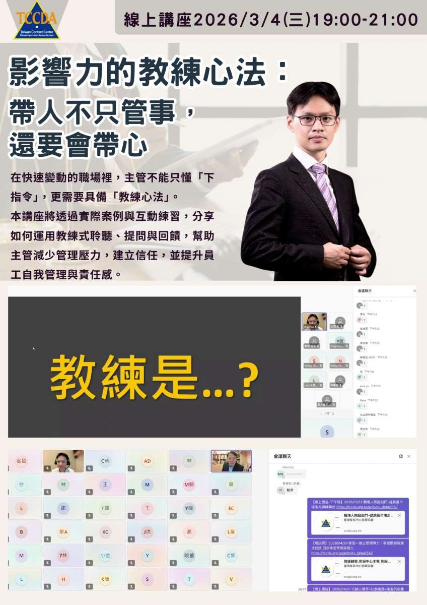 【線上講座】2026/03/04 影響力的教練心法:帶人不只管事,還要會帶心