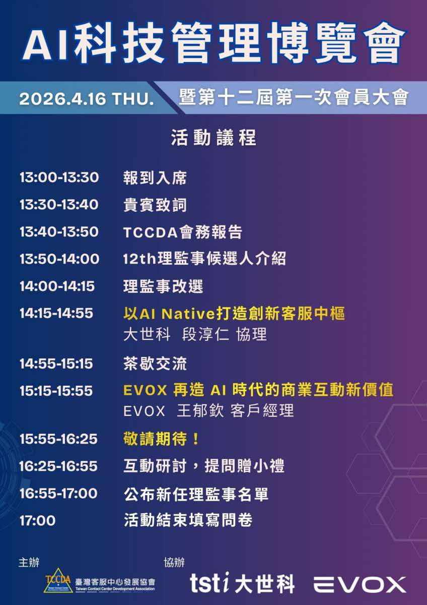 【今天首場研討會!】2026/4/16 AI科技管理博覽會暨第十二屆第一次會員大會