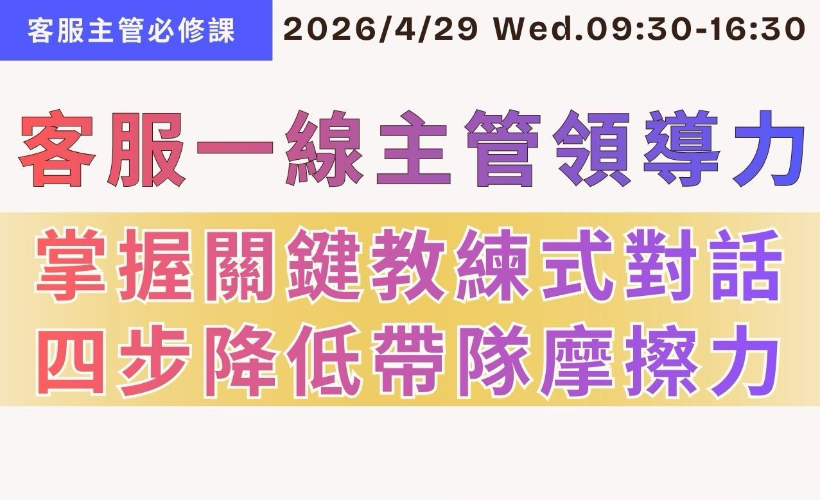 【培訓課】2026/04/29 客服一線主管領導力:掌握關鍵教練式對話 四步降低帶隊摩擦力