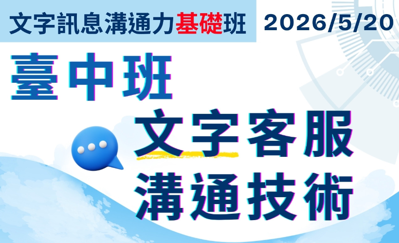 【培訓課】2026/05/20【台中班】文字客服溝通技術