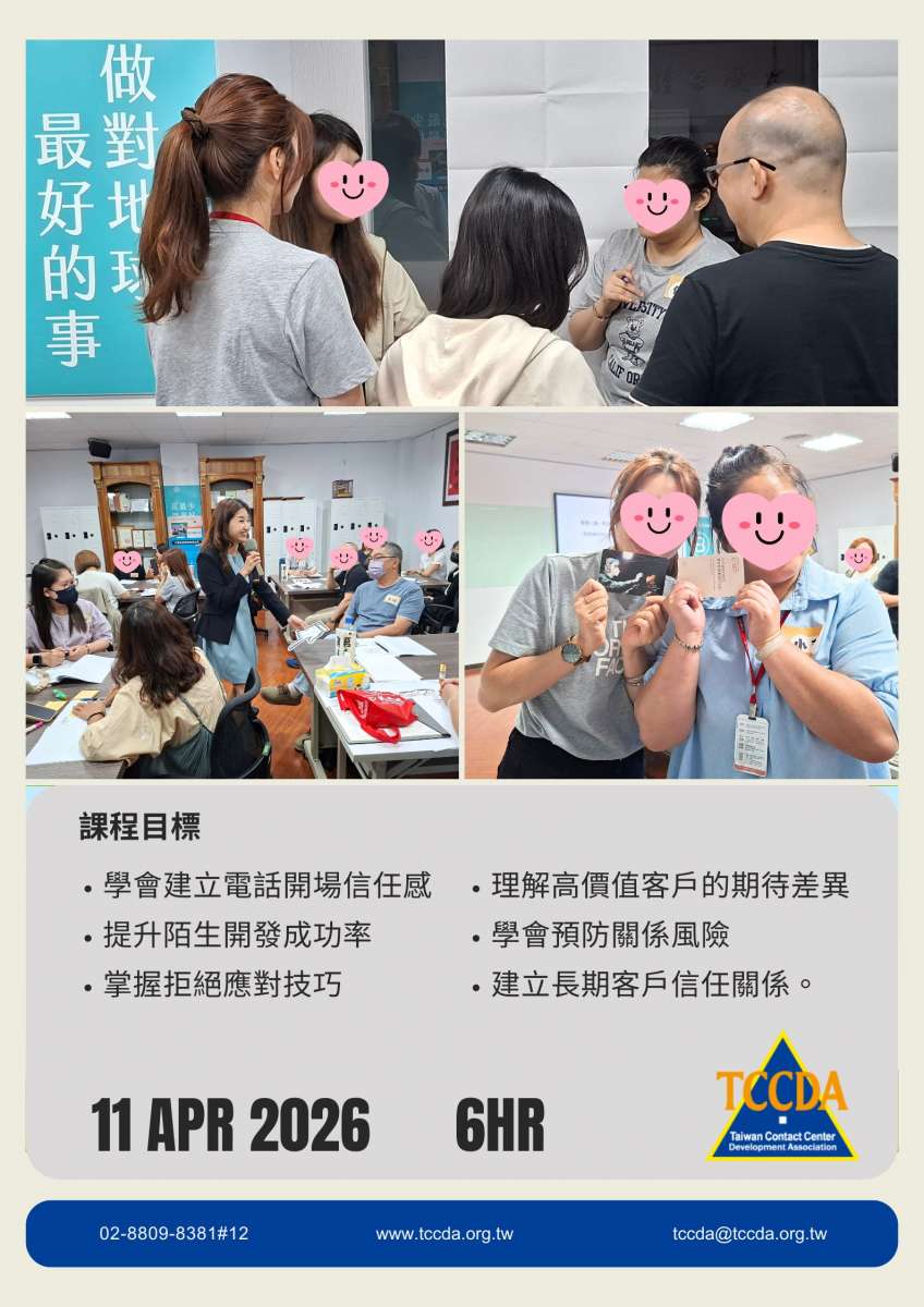 【TCCDA企業內訓】陌生開發與信任建立技巧 & 高價值客戶關係經營技巧