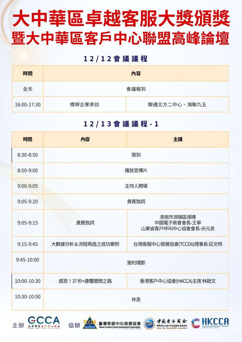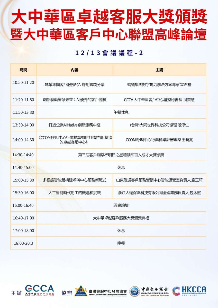 【GCCA】2025/12/12-12/13 大中華區客戶中心聯盟高峰論壇暨卓越客戶服務大獎頒獎晚宴