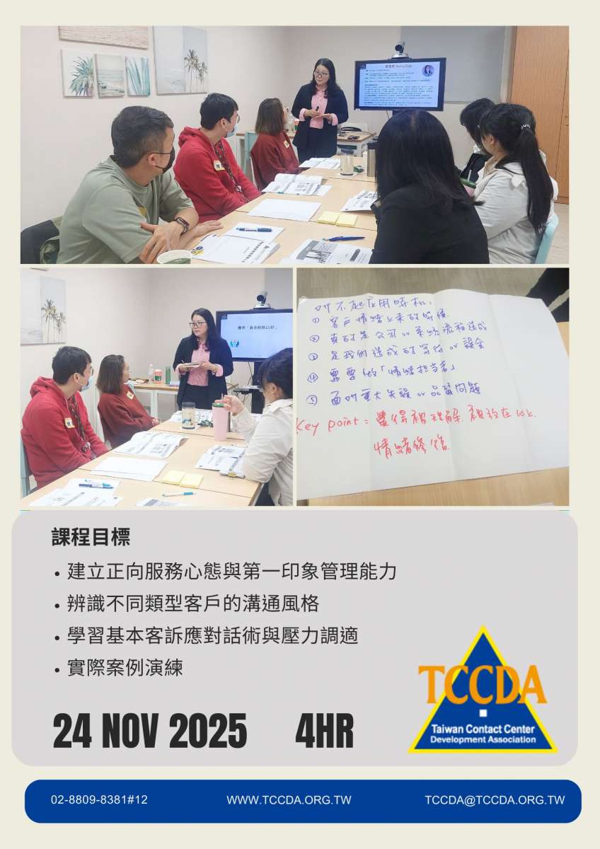 【TCCDA企業內訓】顧客服務與客訴處理心法-台中基礎班