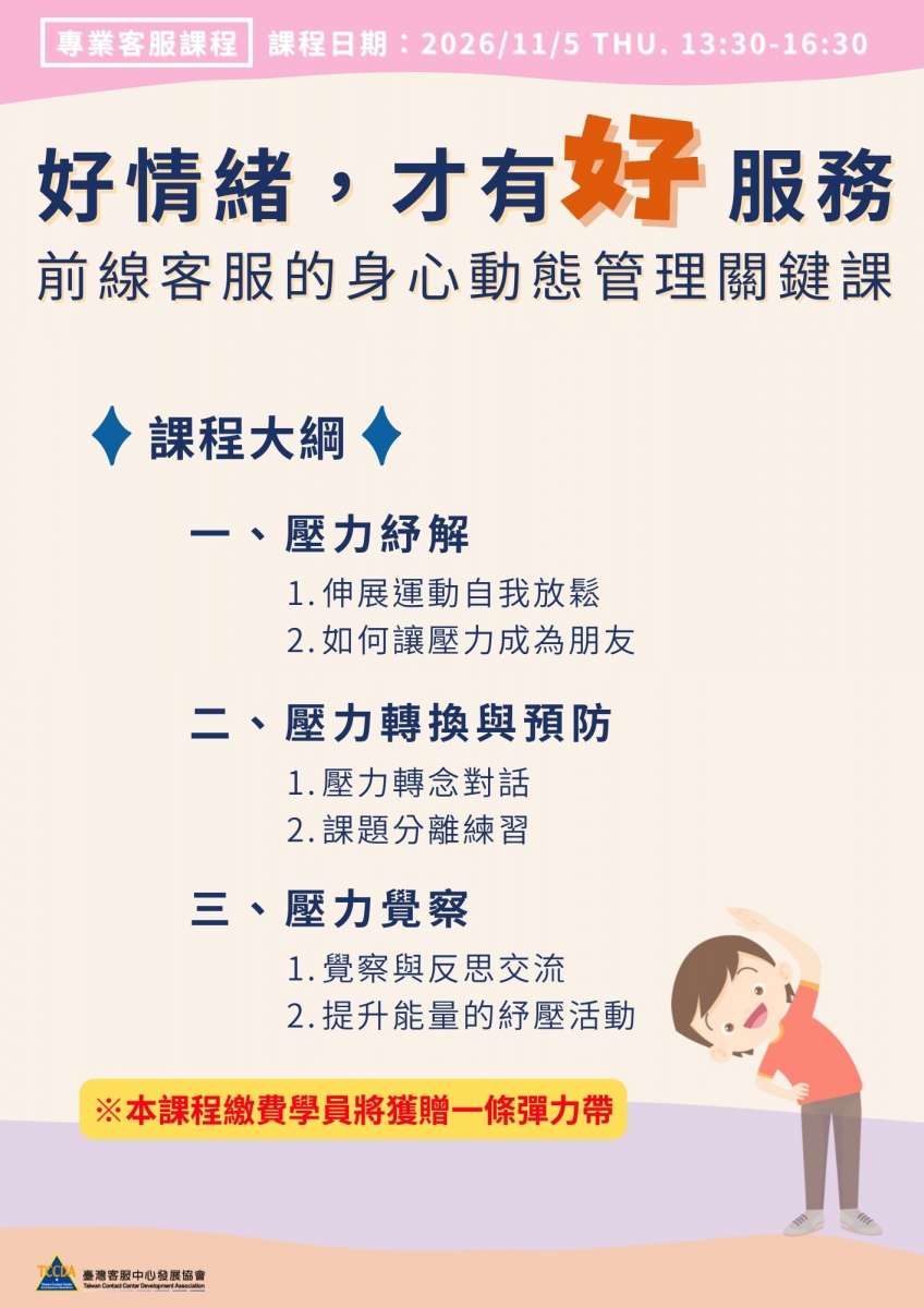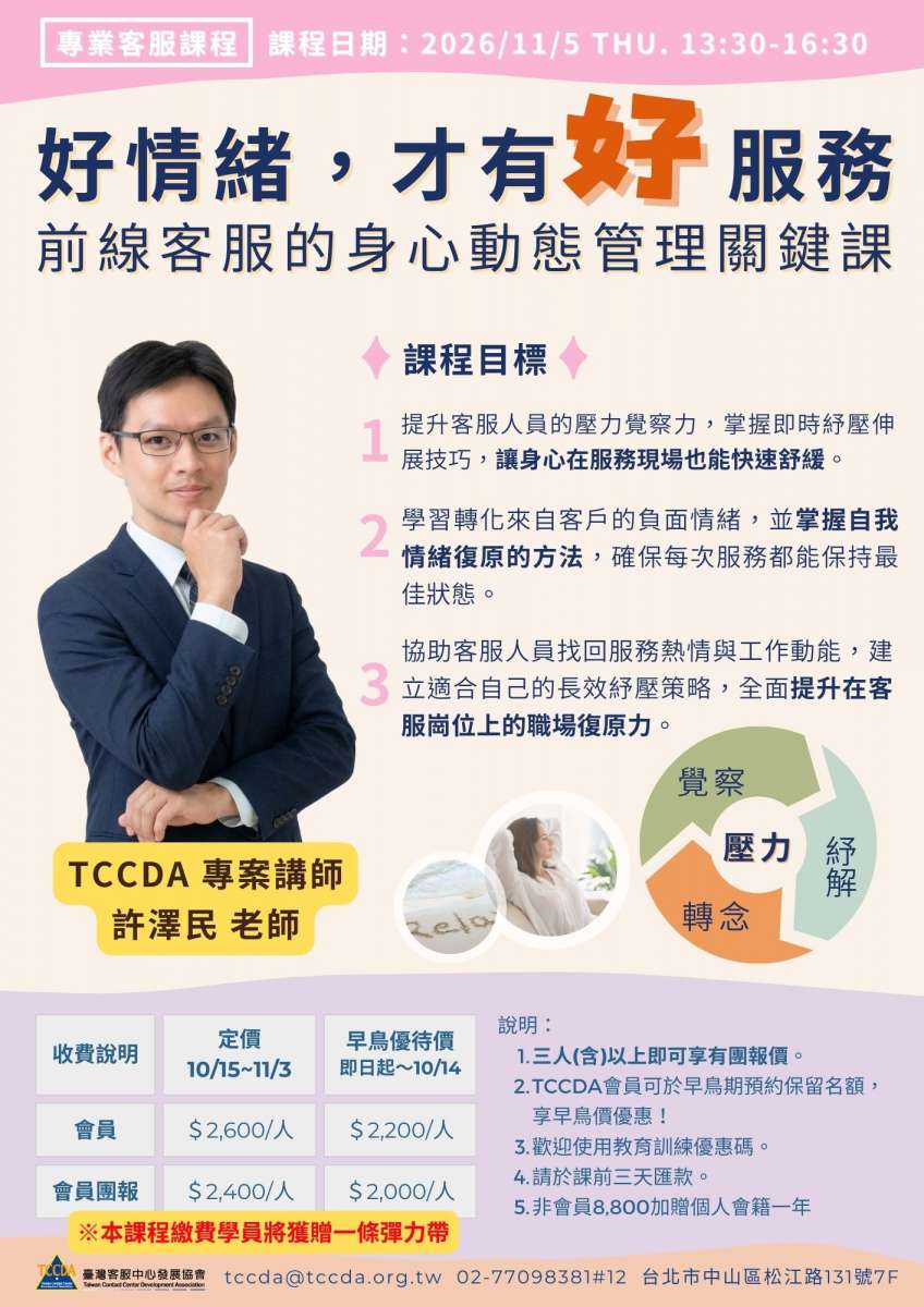 【培訓課】2026/11/05 好情緒,才有好服務:前線客服的身心動態管理關鍵課