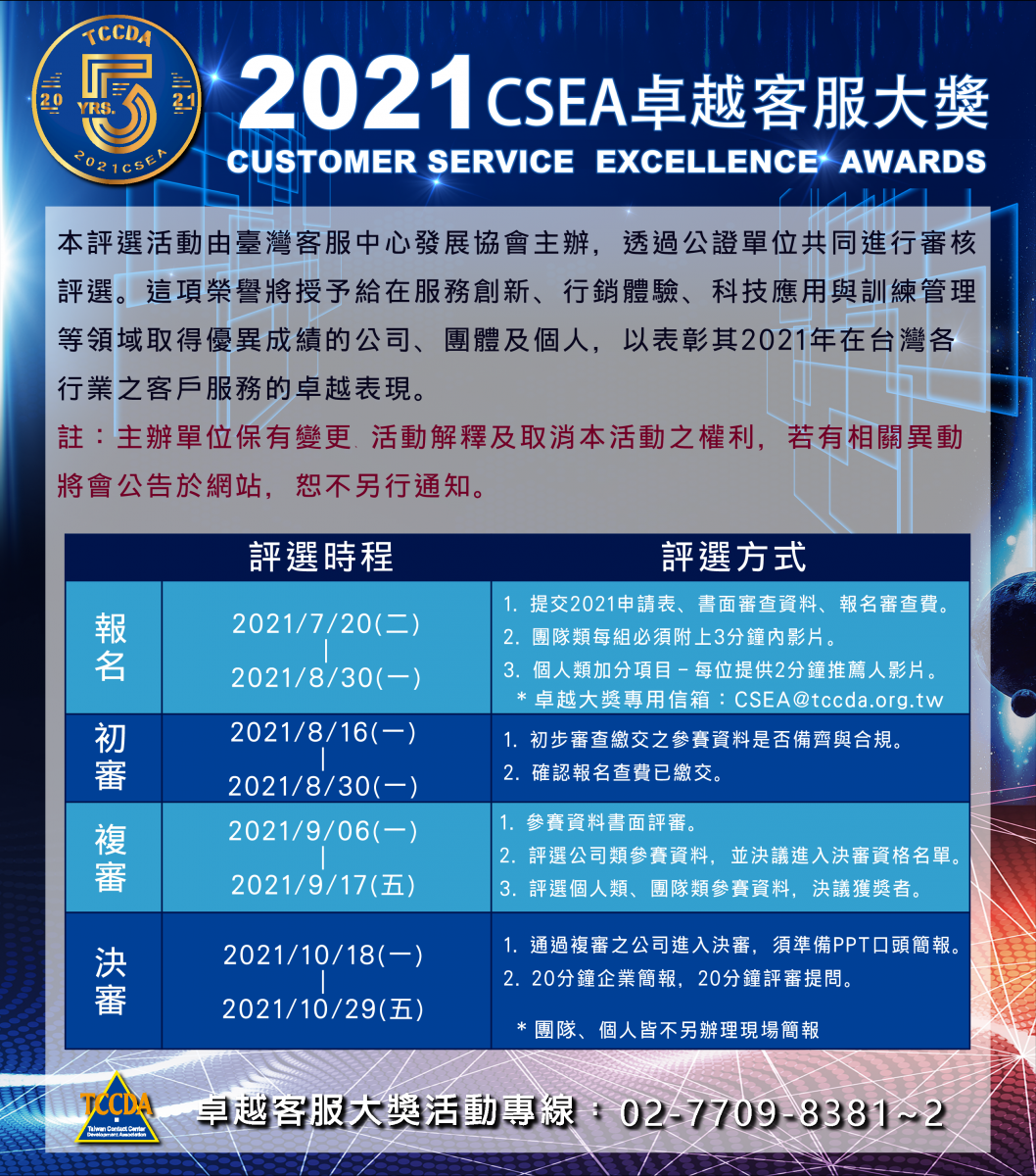 臺灣客服中心發展協會2021年卓越客服大獎報名辦法