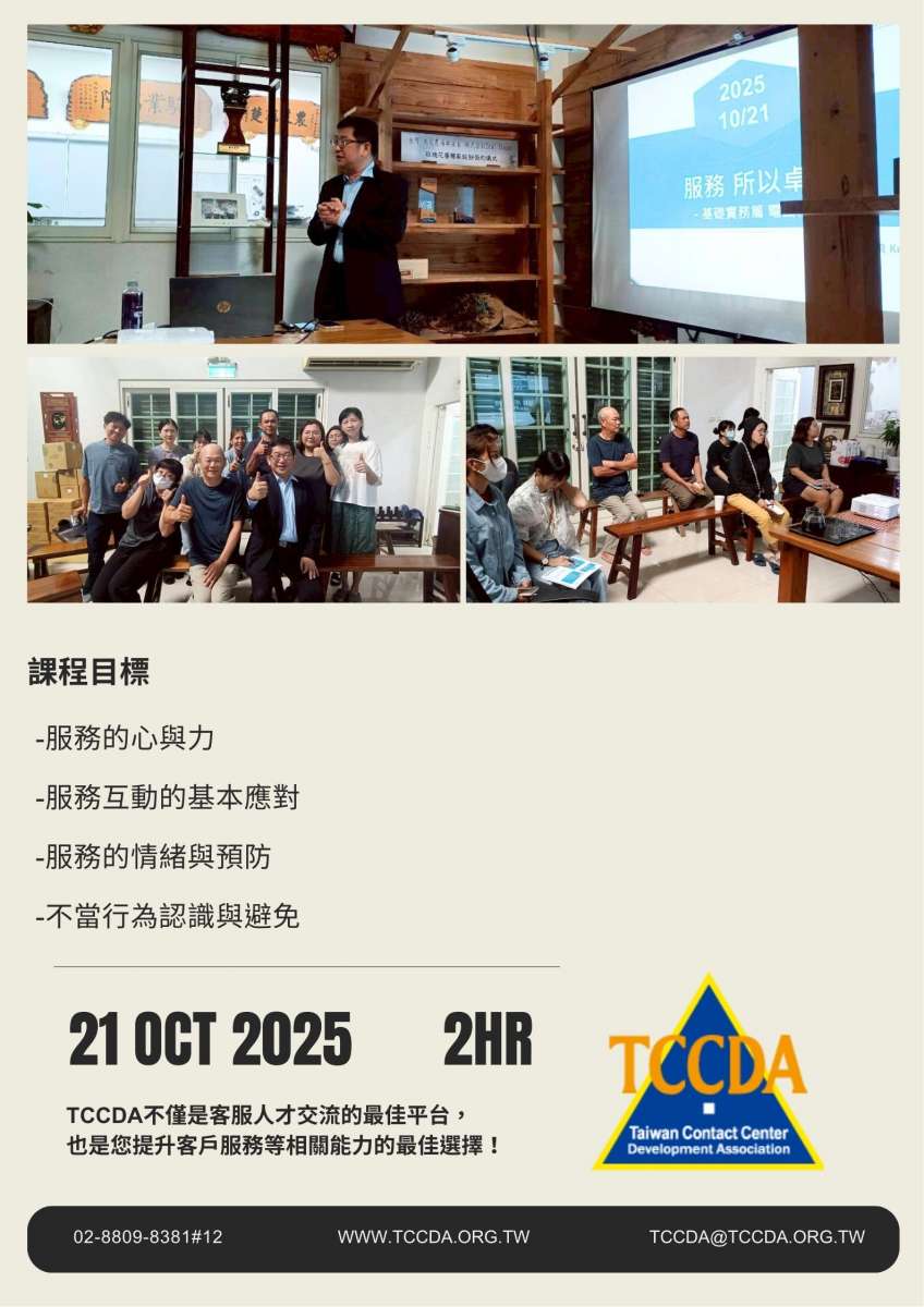 若貴公司有意藉由教育訓練,提升人員素質,邁向優質服務,歡迎來電客服協會洽詢。