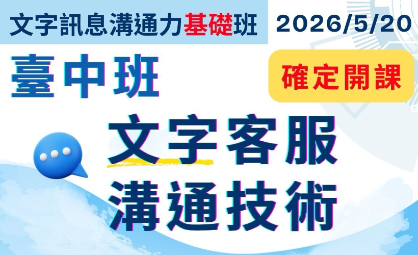 【確定開課】2026/05/20【台中班】文字客服溝通技術