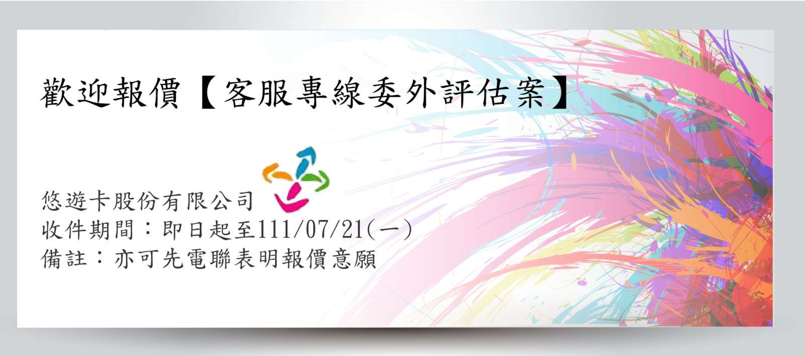 悠遊卡股份有限公司 刻正進行客服專線委外評估案,特邀請 貴公司針對此專案提供報價,相關合作廠商資格、合約內容及報價單請參閱文末附件。