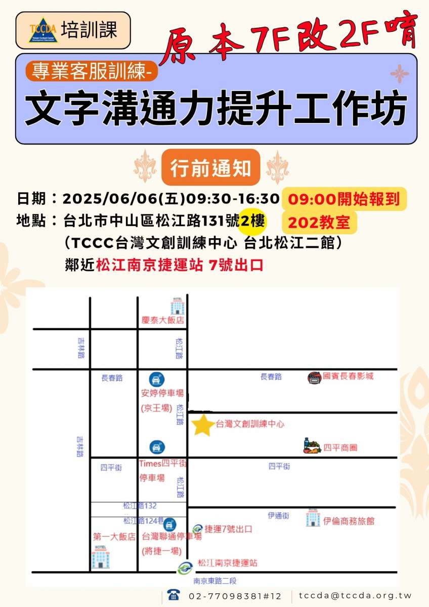 行前通知【培訓課】2025/06/06 專業客服訓練-文字溝通力提升工作坊