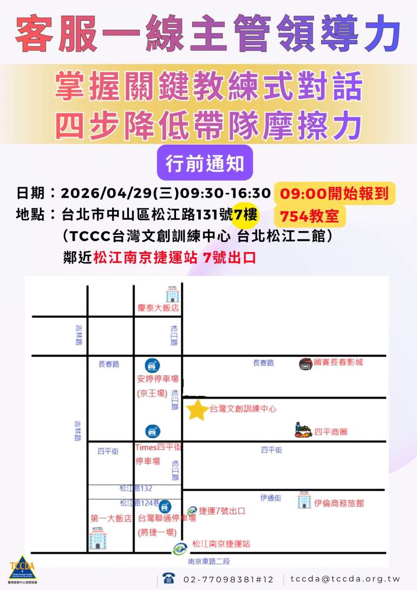 行前通知【培訓課】2026/04/29 客服一線主管領導力:掌握關鍵教練式對話 四步降低帶隊摩擦力