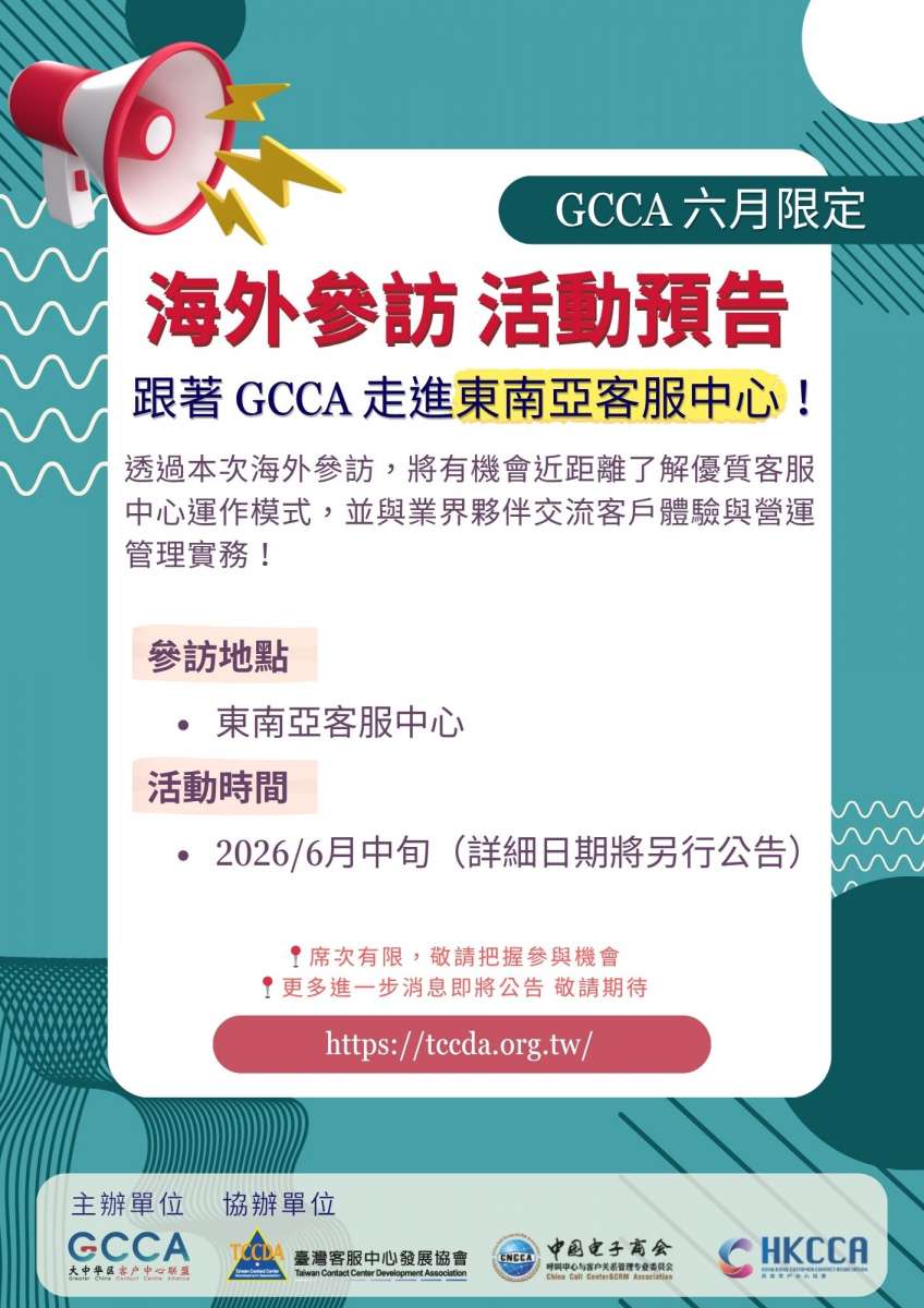 誠摯邀請您參與 GCCA 海外參訪交流!走進客服中心現場,探索標竿營運模式,